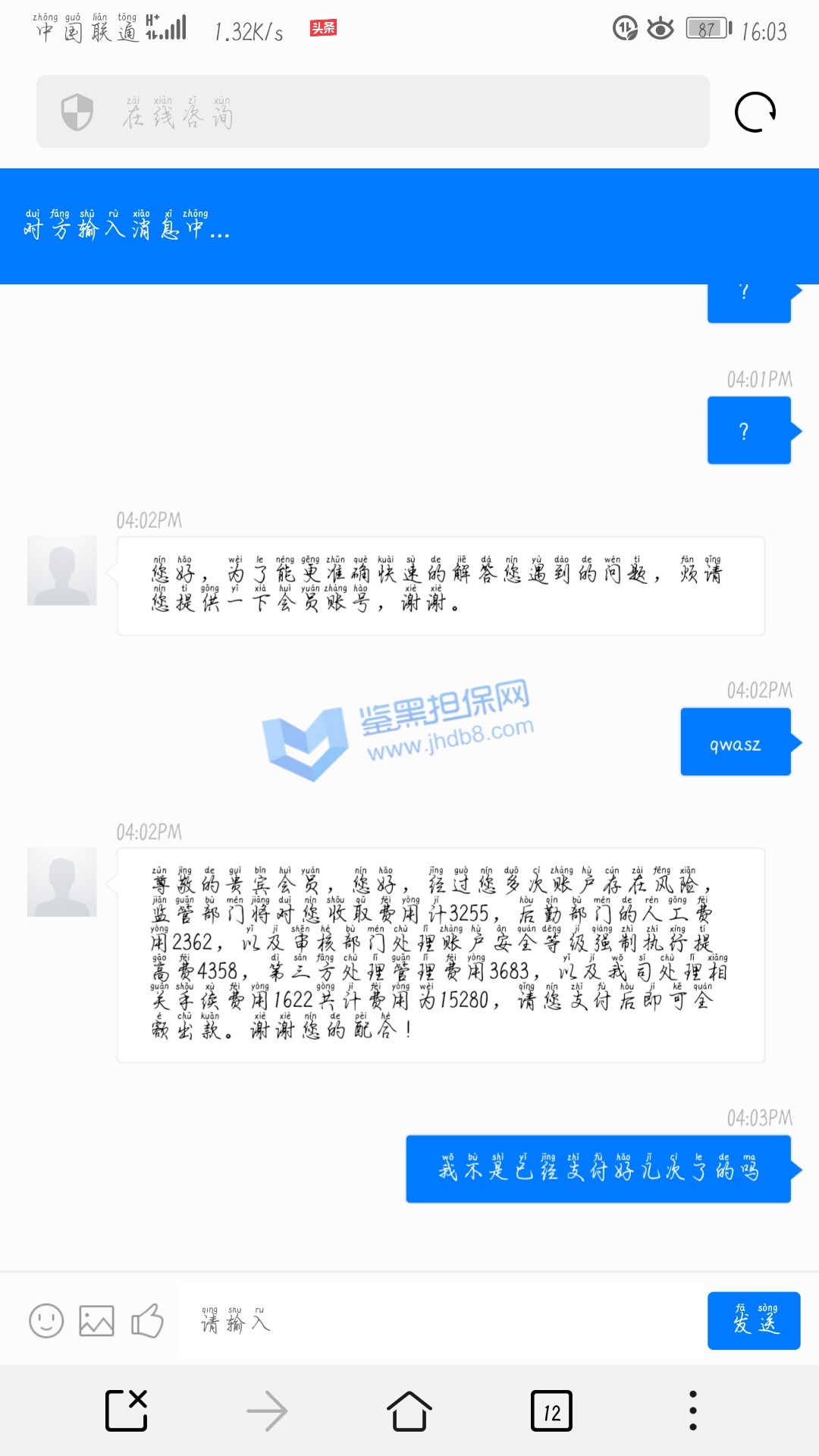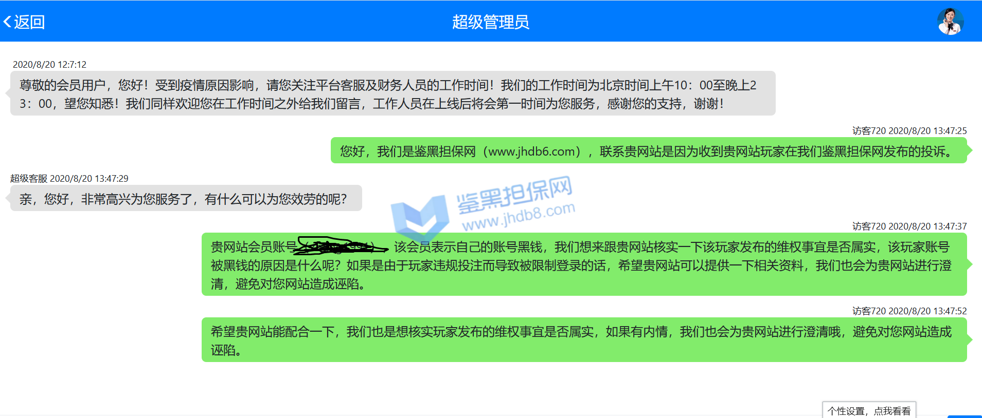 4.用户提交维权需为本人提交,若代替让人发布维权鉴黑担保网将拒绝受理;