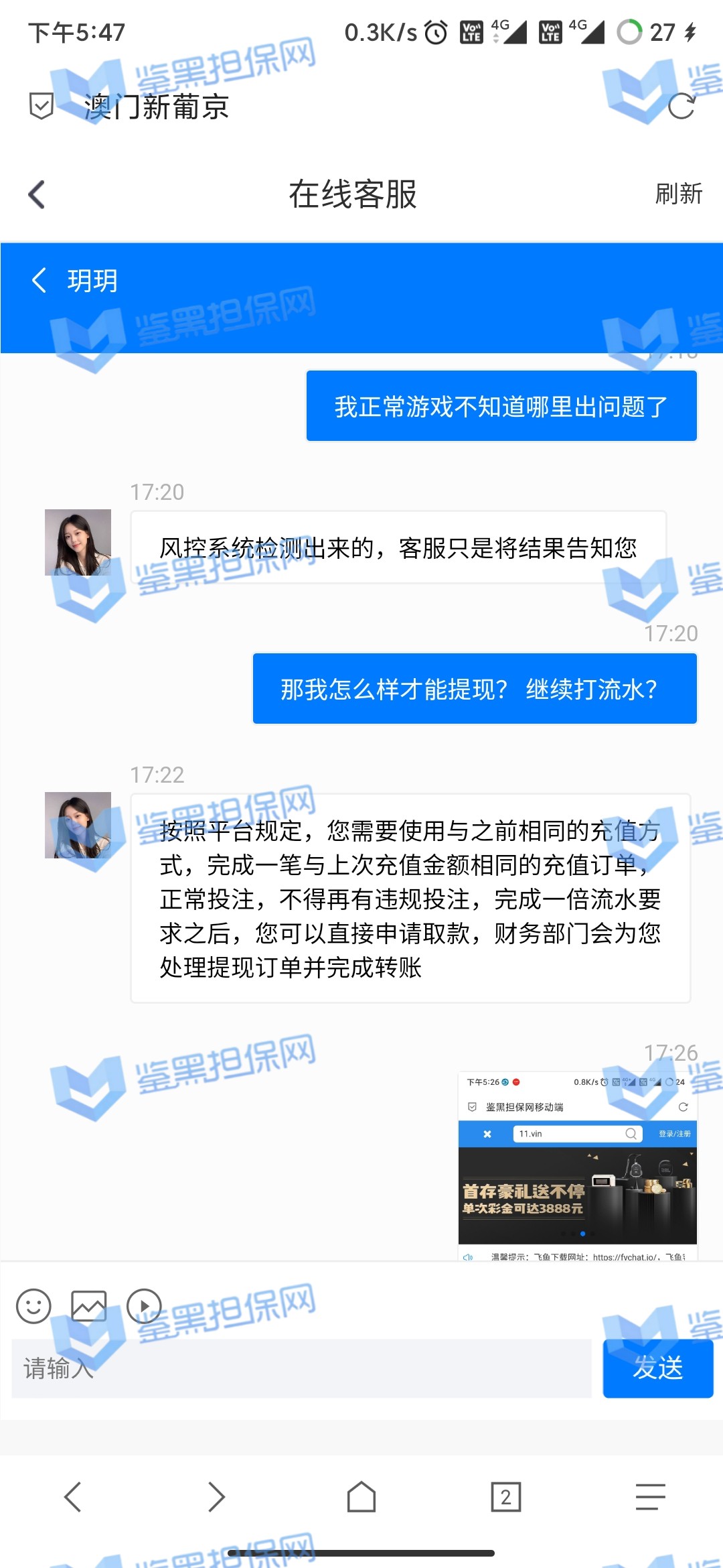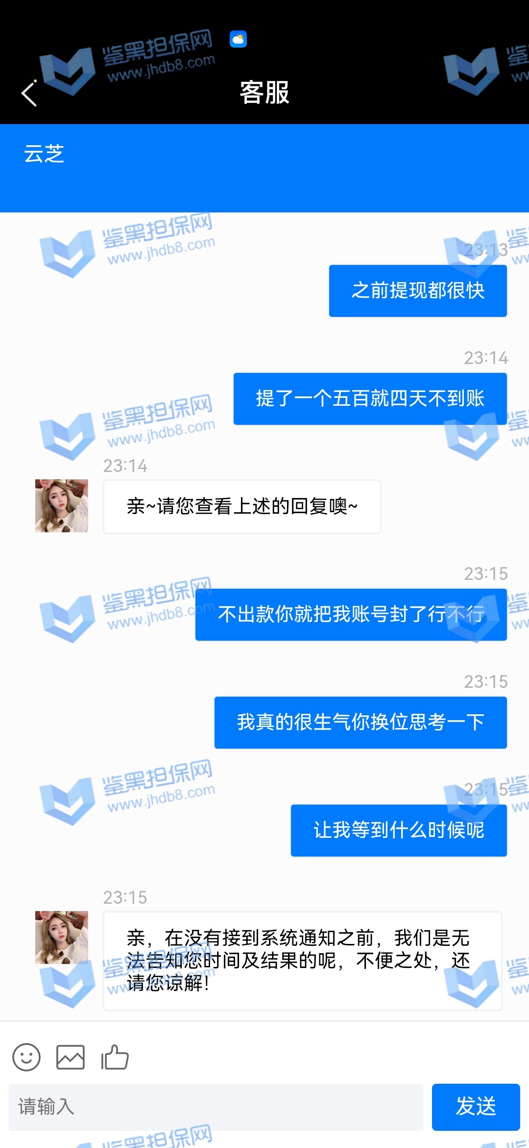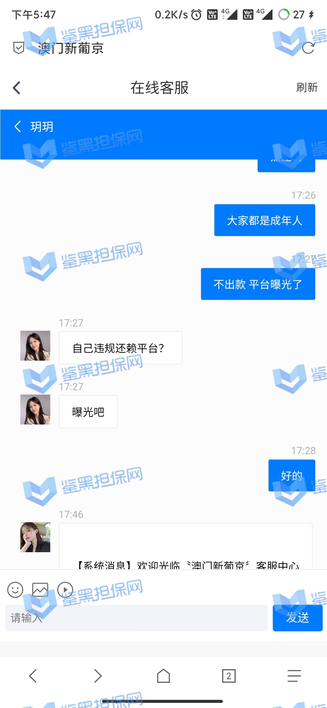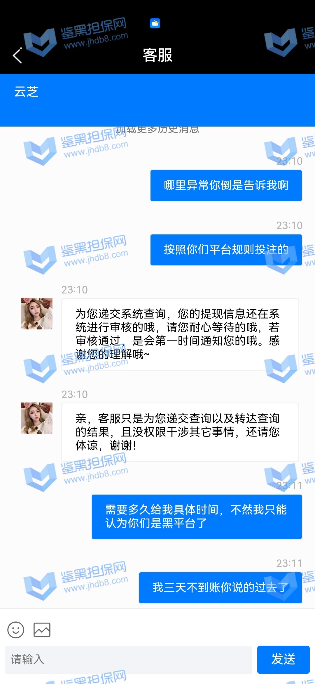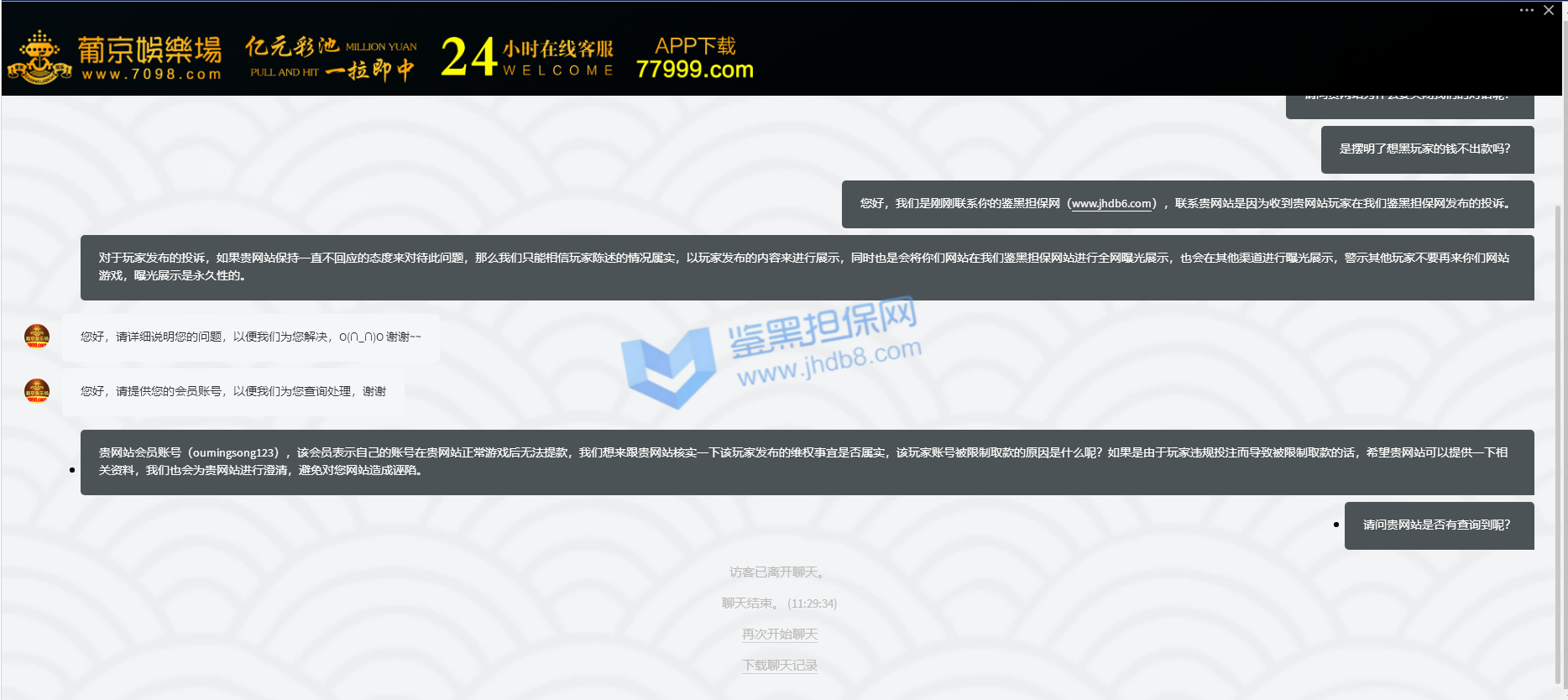 4.用户提交维权需为本人提交,若代替让人发布维权鉴黑担保网将拒绝受理;
