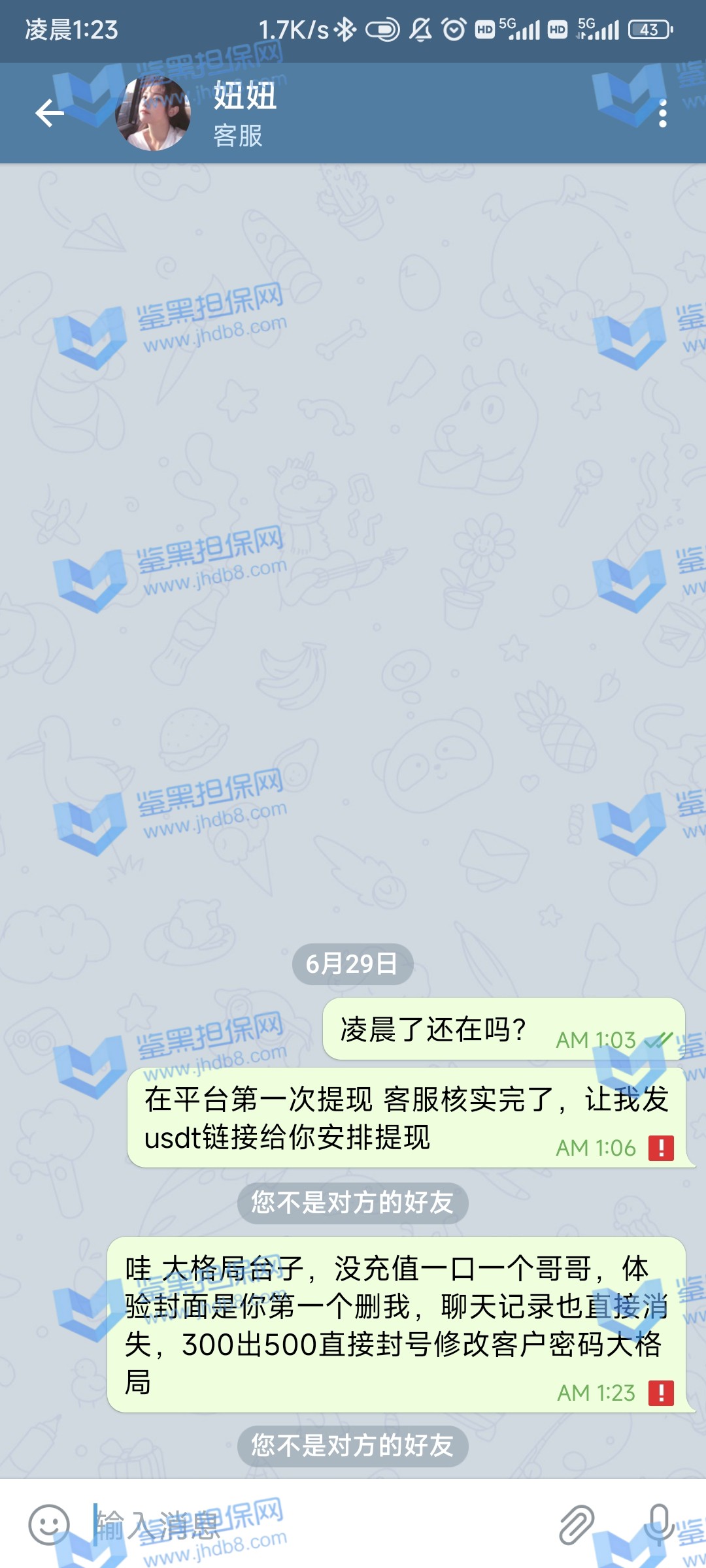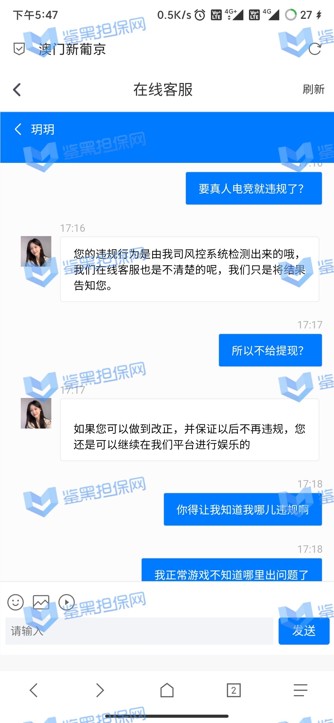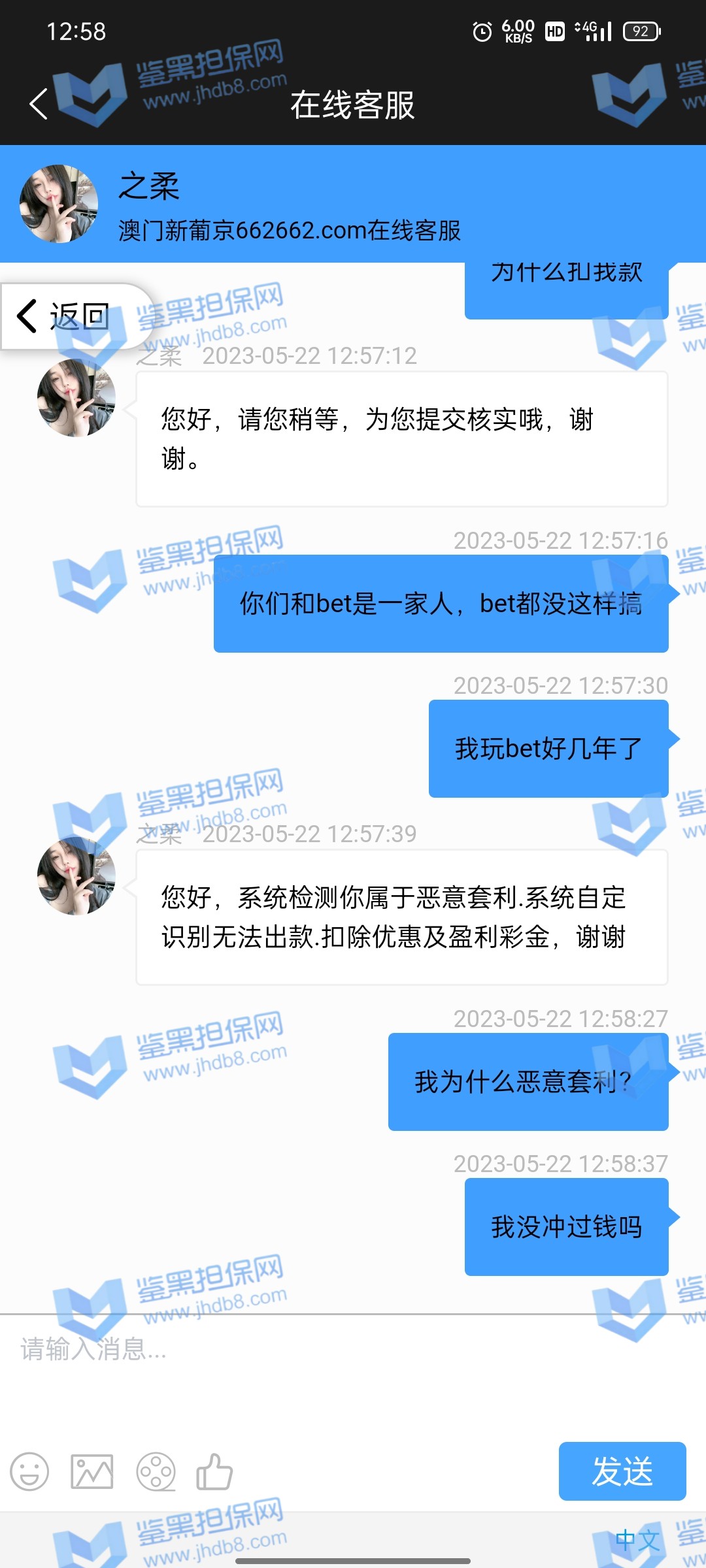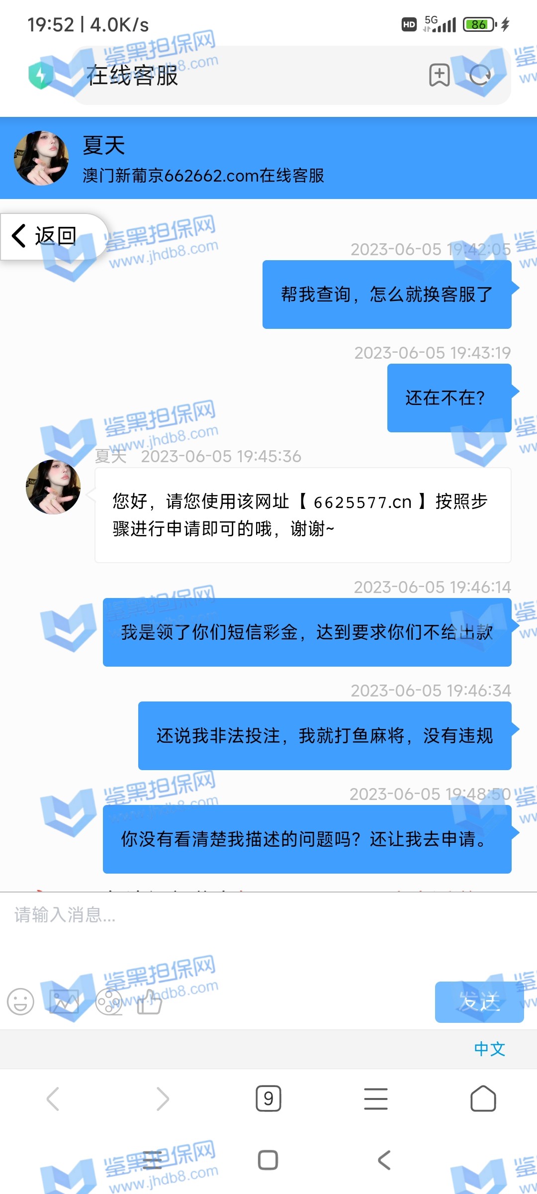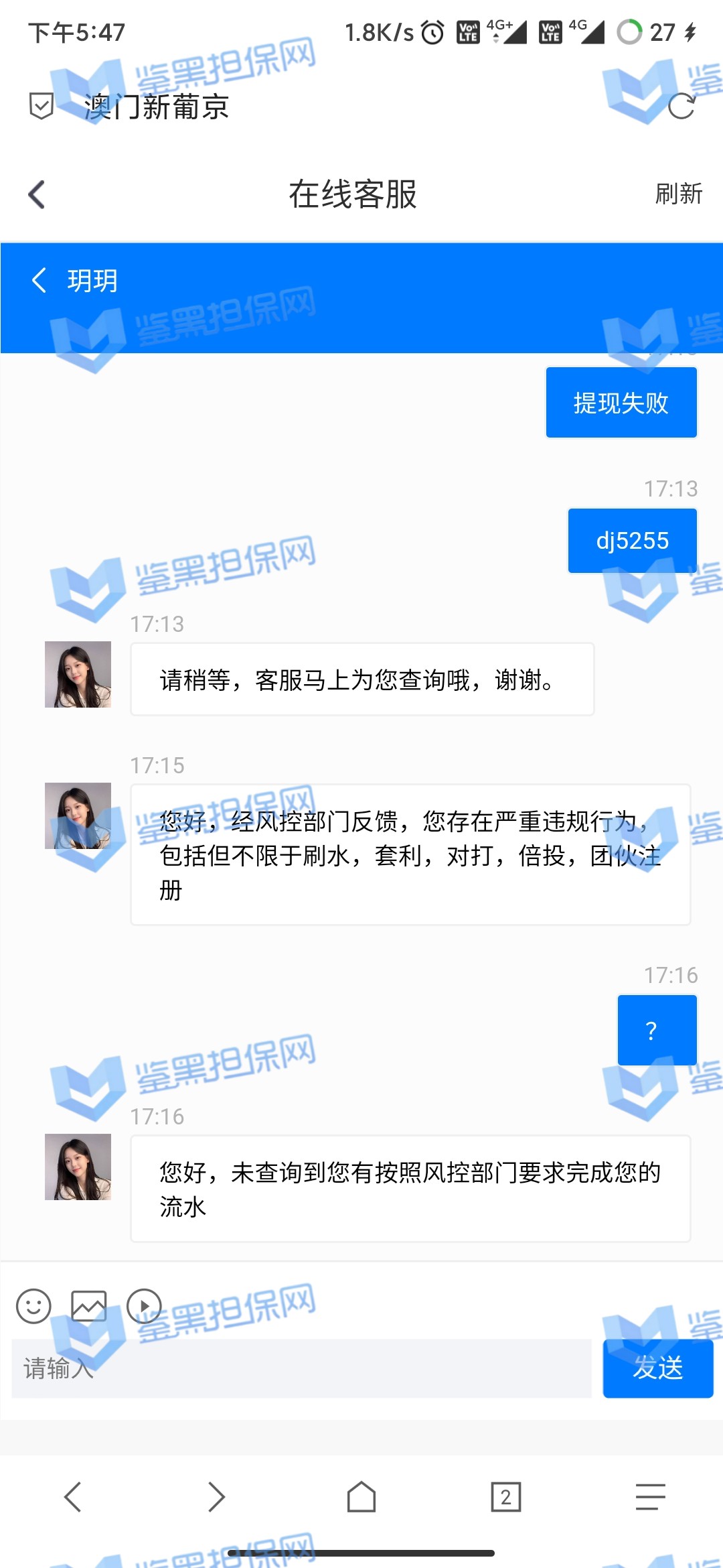 4.用户提交维权需为本人提交,若代替让人发布维权鉴黑担保网将拒绝受理;