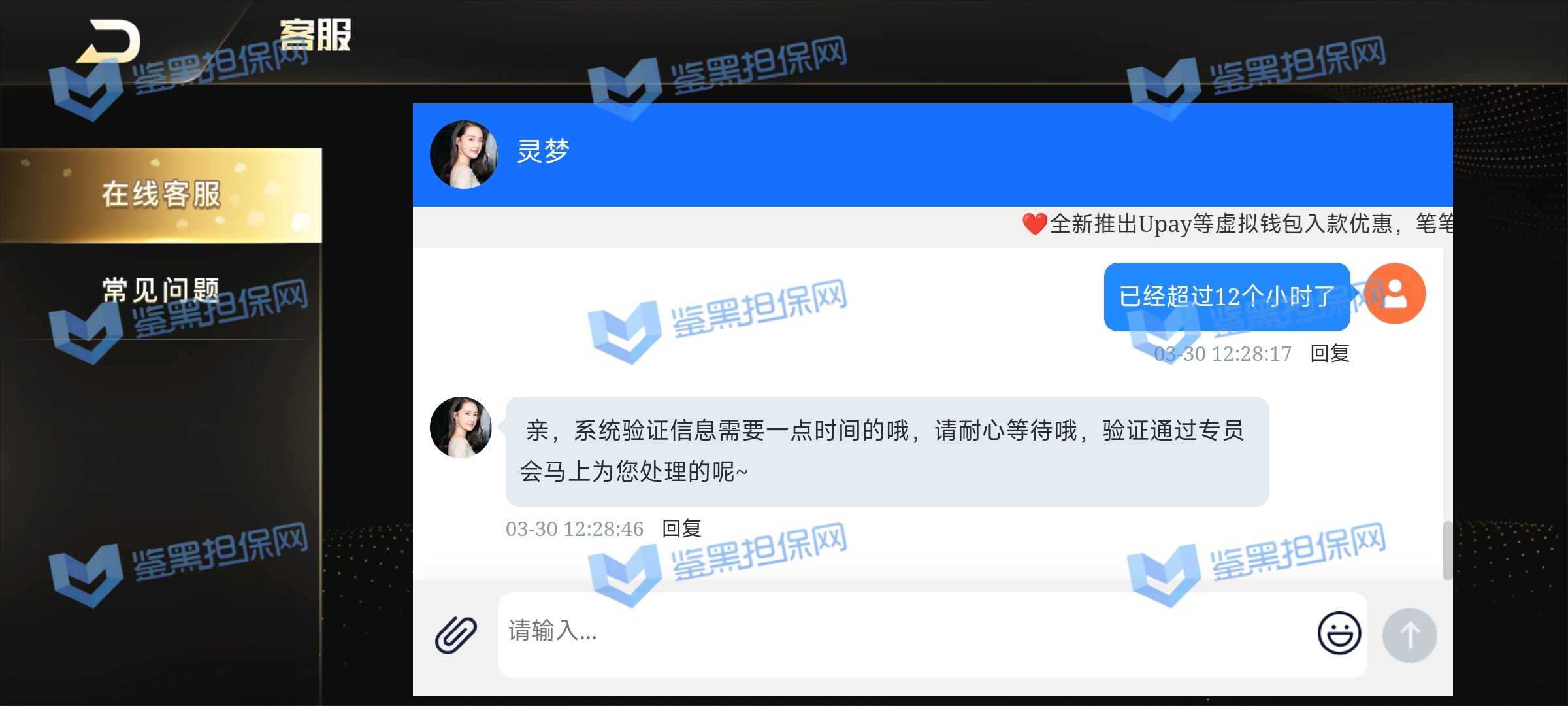 2、鉴黑担保网维权专员联系该平台核实审核进度,对方表示认证审核需要时间,还请耐心等待,维权专员沟通要求尽快完成审核给会员出款,避免造成会员的恐慌以及对平台的不信任,对方说已经加快审核进度,让其耐心等待即可。