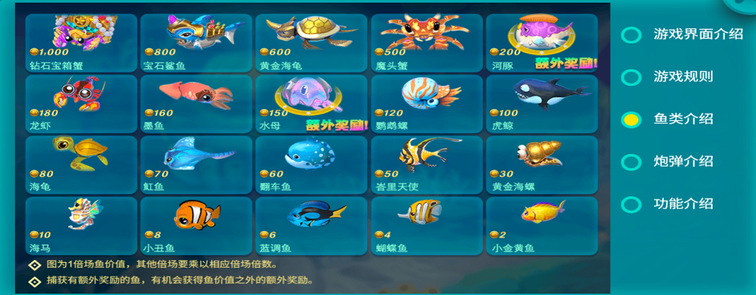 3、不同鱼类不同炮台