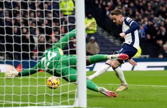 此役复出重返首发阵容的麦迪逊起到了关键作用,比赛的第12分钟,孙兴慜禁区内回做,贝尔温扫射被奥纳纳封出,麦迪逊补射破门,为热刺打破僵局。破门之后,麦迪逊做出了扔飞镖的动作。